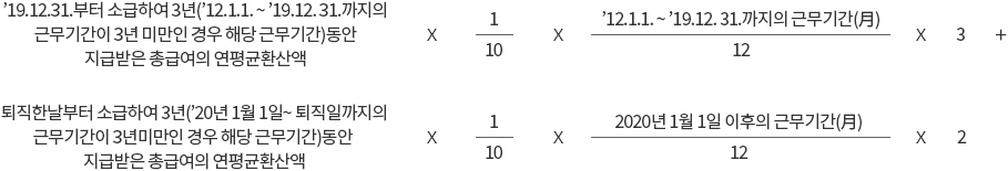 ** 근속연수:역년에 의해 계산하며 1년 미만은 월수로 계산하되, 1개월 미만은 산입하지 아니한다. 이 경우 사용인에서 임원으로 된 때에 퇴직금을 지급하지 아니한 경우에는 사용인으로 근무한 기간을 근속연수에 합산할 수 있다.